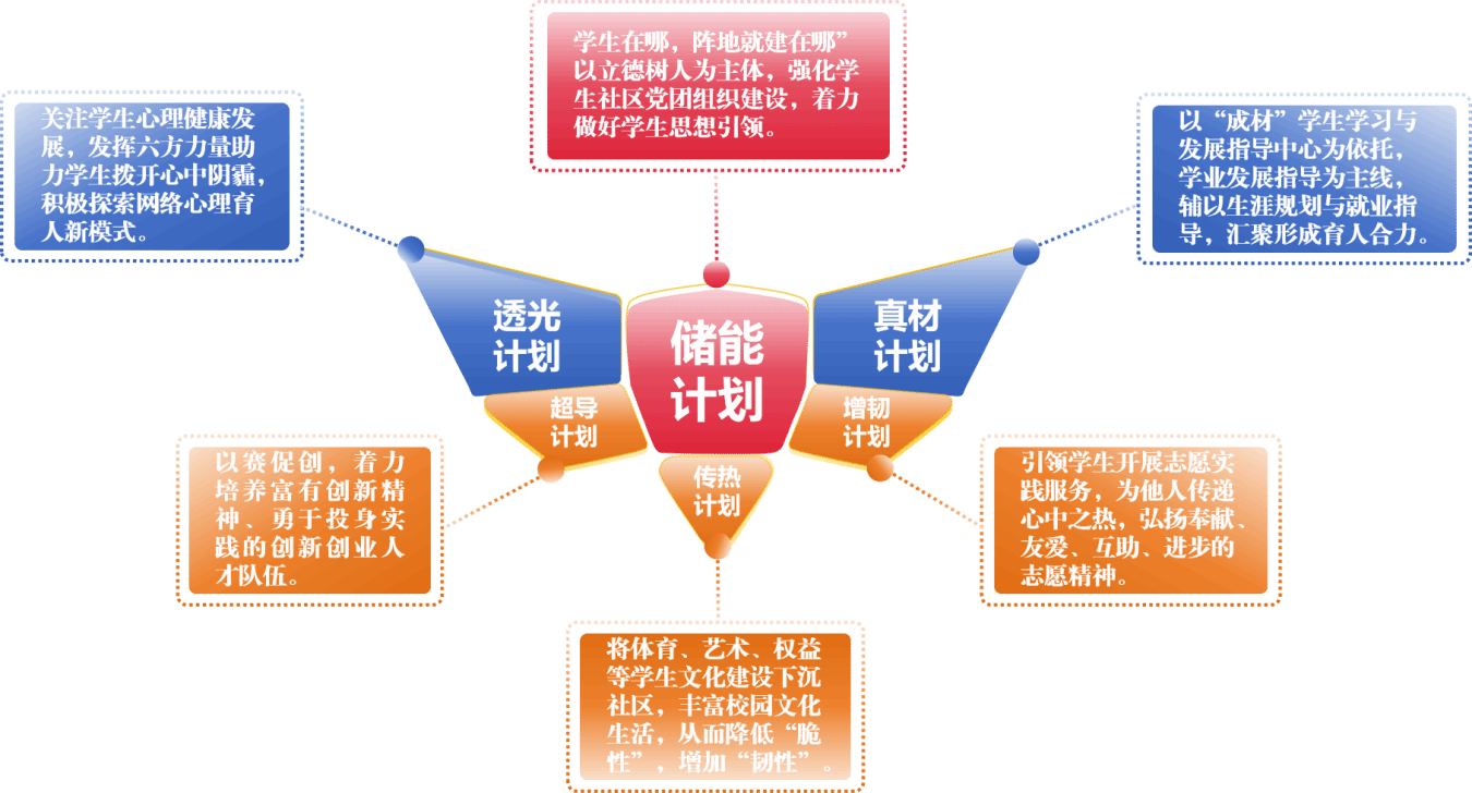 材料学院党委持续强化思想政治教育突出育人成效,构建了“一体两翼三引擎”的学风建设工作模式,围绕材料学科特色,提出以立德树人为一个主体的储能计划;以学风建设和心理育人作为“两翼”贯穿全过程的真材、透光计划;以双创意识培养、志愿实践服务、体育美育赋能组成的超导、传热、增韧“三大引擎”,全面助力学生成长成才。实行“421”联动机制,抓好辅导员、班主任、学生干部、宿舍舍长“四个队伍”,用好校友导师、朋辈导师“两个导师”,建好学生学习与发展指导中心“一个平台”,通过联动机制共同搭建学院学风建设育人体系。