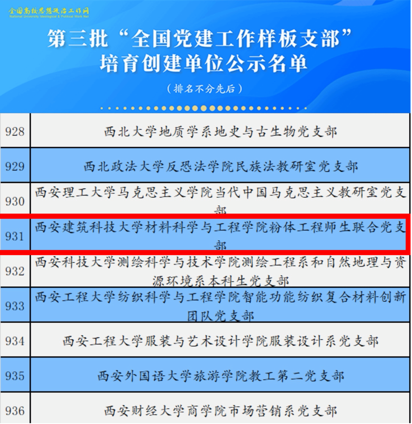 在学院党委的政治核心与监督保障作用引领下,学院党支部的战斗堡垒作用、党员的先锋模范带头作用得到强化,一批先进集体与个人受到表彰:先后荣获第三批全国党建工作样板支部1个,全国钢铁行业五四红旗团支部1个,全国科学家精神教育基地1个,中国大学生自强之星、陕西省大学生自强之星各1人,陕西省优秀共产党员1人,陕西省优秀共青团干2人,陕西省育德先进辅导员1人,陕西省社会实践先进个人2人。学院党委荣获2019-2021年度校级“先进基层党委”称号。