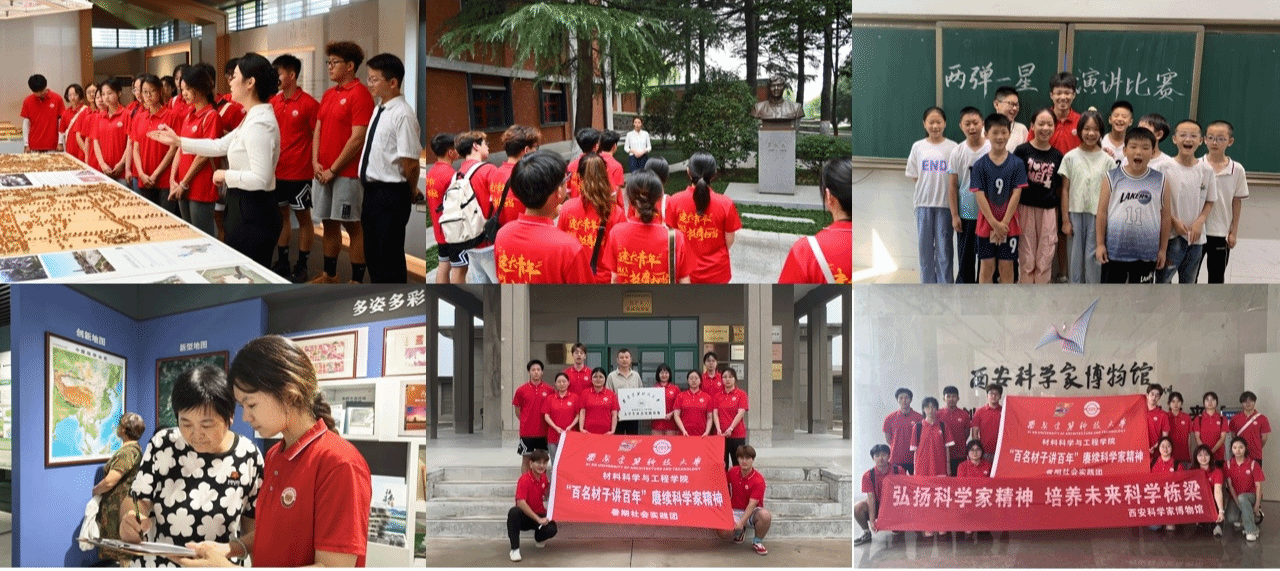 党支部注重先进典型的挖掘宣传,在“育-选-树-学”方面下功夫。组建了“薪火相传”党史宣讲团与“百名材子讲百年”赓续科学家精神宣讲团两支社会实践队伍,足迹遍布20个省份,114个村庄、社区、学校,开展了373场宣讲,连续两年获批“全国百强实践团队”。“百名材子讲百年”赓续科学家精神走遍陕西范围内入选全国“科学家精神”教育基地去实地追星,持续深入推进科学家精神教育成效,培养新时代“追星人”。